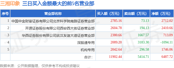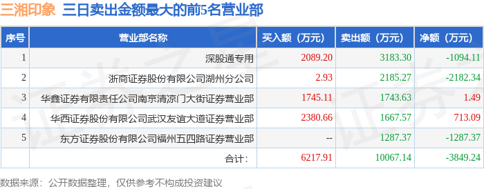 证券之星消息,沪深交易所2025年12月19日公布的交易公开信息显示,三湘印象(000863)因连续三个交易日内,涨幅偏离值累计达到20%的证券登上龙虎榜。此次是近5个交易日内第1次上榜。
