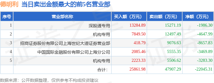 证券之星消息,沪深交易所2025年12月19日公布的交易公开信息显示,德明利(001309)因日跌幅偏离值达到7%的前5只证券登上龙虎榜。此次是近5个交易日内第1次上榜。