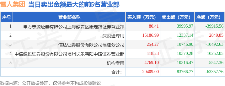 证券之星消息,沪深交易所2025年12月19日公布的交易公开信息显示,雪人集团(002639)因日涨幅偏离值达到7%的前5只证券,日换手率达到20%的前5只证券登上龙虎榜。此次是近5个交易日内第5次上榜。