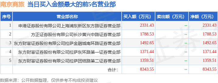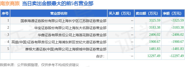 证券之星消息,沪深交易所2025年12月19日公布的交易公开信息显示,南京商旅(600250)因有价格涨跌幅限制的日换手率达到20%的前五只证券登上龙虎榜。此次是近5个交易日内第2次上榜。
