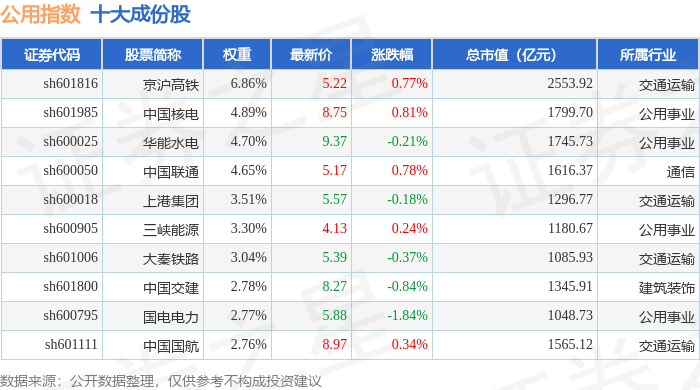 资金流向方面,公用指数(000007)成份股当日主力资金净流出合计3.95亿元,游资资金净流出合计2.42亿元,散户资金净流入合计6.37亿元。成份股资金流向详情见下表: