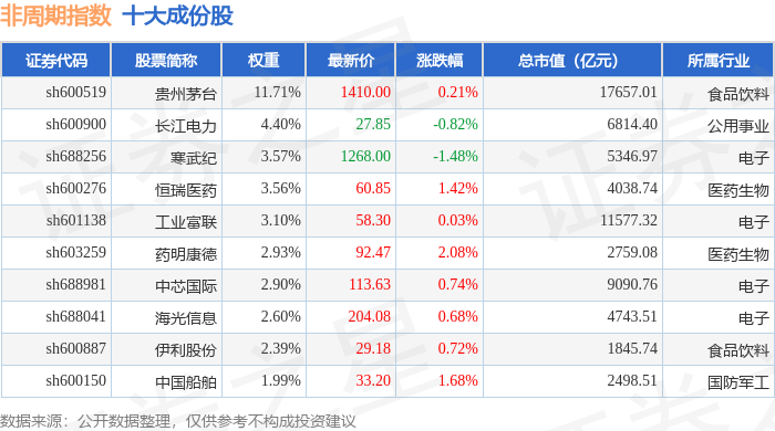 证券之星消息,12月19日,非周期(000064)指数报收于3507.2点,涨0.35%,成交1306.99亿元,换手率0.75%。当日该指数成份股中,上涨的有71家,中国中免以8.25%的涨幅领涨,下跌的有27家,佰维存储以2.9%的跌幅领跌。