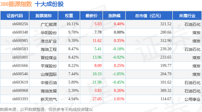 近10日内380能源(000104)指数成份股做了调整,新纳入了3只股票。