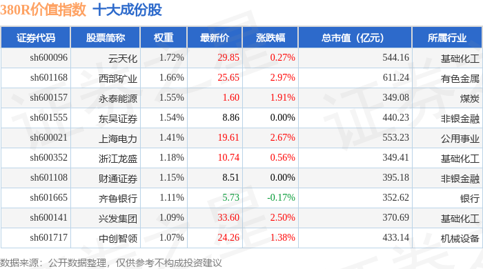 380R价值(000120)指数十大成份股详情如下: