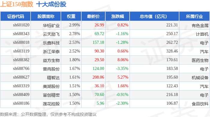 证券之星消息,12月19日,上证150(000133)指数报收于6461.36点,涨0.19%,成交371.65亿元,换手率3.74%。当日该指数成份股中,上涨的有104家,益方生物以8.06%的涨幅领涨,下跌的有45家,星环科技以8.07%的跌幅领跌。