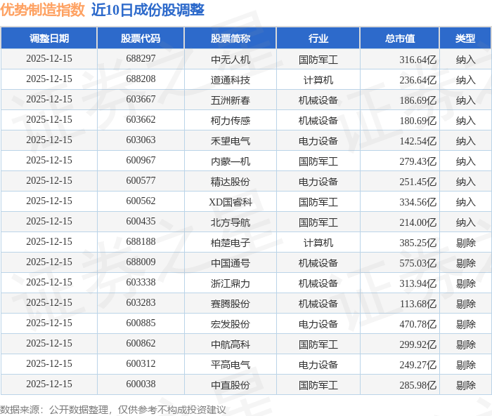 近10日内优势制造(000146)指数成份股做了调整,新纳入了9只股票,剔除了8只股票。