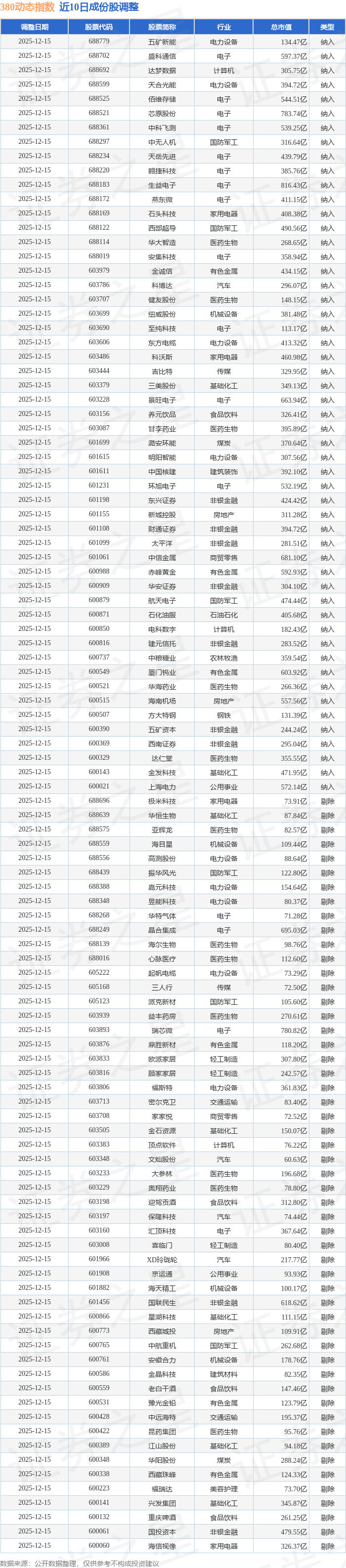 近10日内380动态(000141)指数成份股做了调整,新纳入了53只股票,剔除了53只股票。