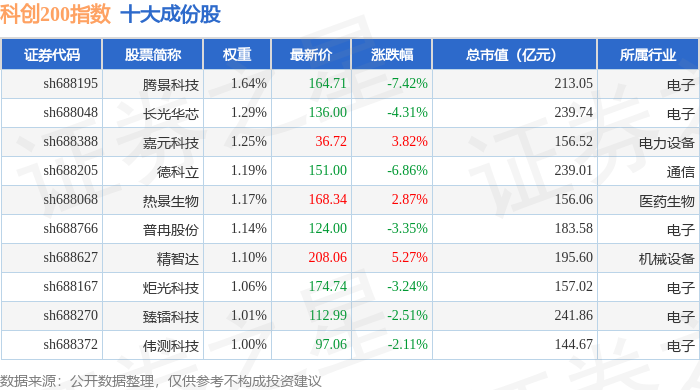 证券之星消息,12月19日,科创200(000699)指数报收于1265.52点,跌0.08%,成交489.1亿元,换手率2.31%。当日该指数成份股中,上涨的有119家,莱特光电以12.54%的涨幅领涨,下跌的有79家,神工股份以8.62%的跌幅领跌。