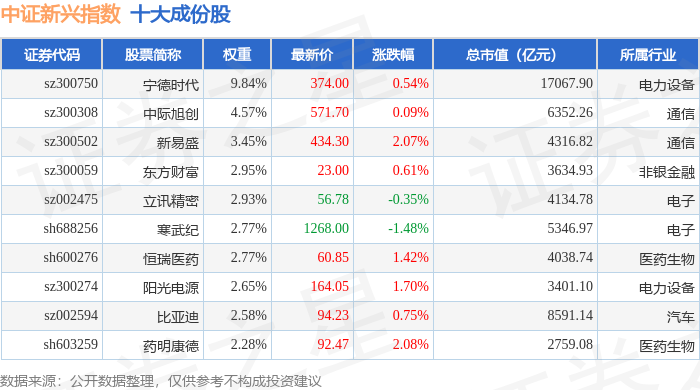 中证新兴(000964)指数十大成份股详情如下: