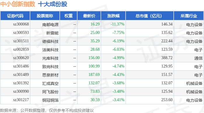 中小创新(399015)指数十大成份股详情如下:
