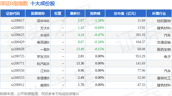 资金流向方面,深证B指(399108)指数成份股当日主力资金净流出合计141.63万元,游资资金净流入合计679.46万元,散户资金净流出合计537.82万元。成份股资金流向详情见下表: