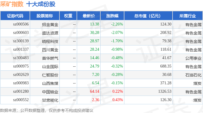 采矿指数(399232)十大成份股详情如下: