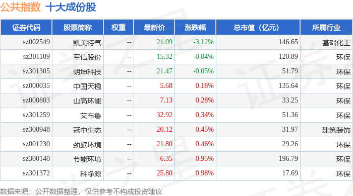 证券之星消息,12月19日,公共指数(399244)报收于611.38点,涨1.75%,成交85.97亿元,换手率2.6%。当日该指数成份股中,上涨的有50家,启迪环境以9.91%的涨幅领涨,下跌的有3家,凯美特气以3.12%的跌幅领跌。