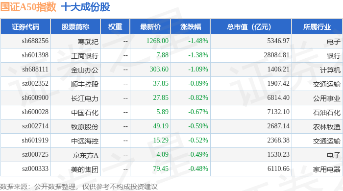 近10日内国证A50(399310)指数成份股做了调整,新纳入了3只股票,剔除了3只股票。