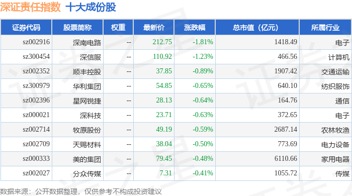 证券之星消息,12月19日,深证责任(399341)指数报收于1636.39点,涨0.62%,成交700.79亿元,换手率1.13%。当日该指数成份股中,上涨的有79家,藏格矿业以6.56%的涨幅领涨,下跌的有19家,深南电路以1.81%的跌幅领跌。