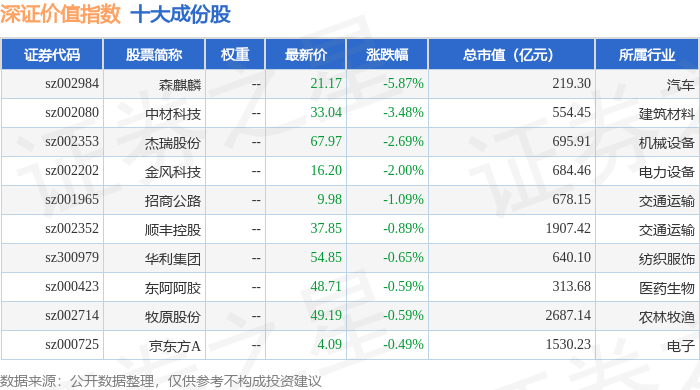 深证价值(399348)指数十大成份股详情如下: