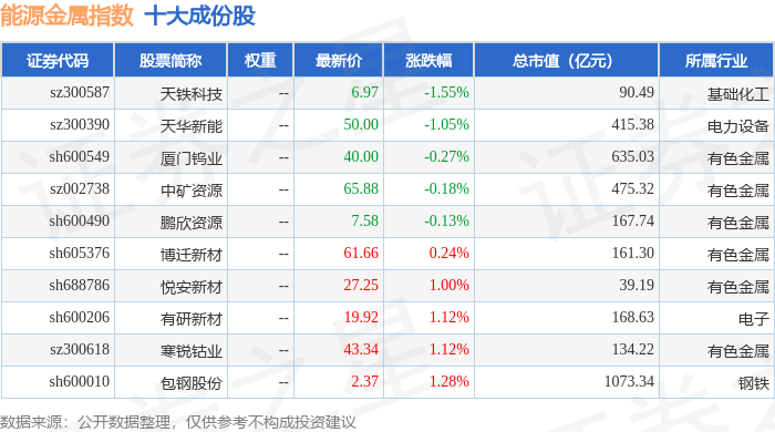能源金属(399366)指数十大成份股详情如下: