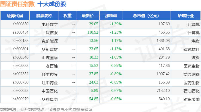 证券之星消息,12月19日,国证责任(399369)指数报收于1521.01点,涨0.1%,成交571.01亿元,换手率0.59%。当日该指数成份股中,上涨的有75家,新大正以5.31%的涨幅领涨,下跌的有24家,电科数字以1.39%的跌幅领跌。