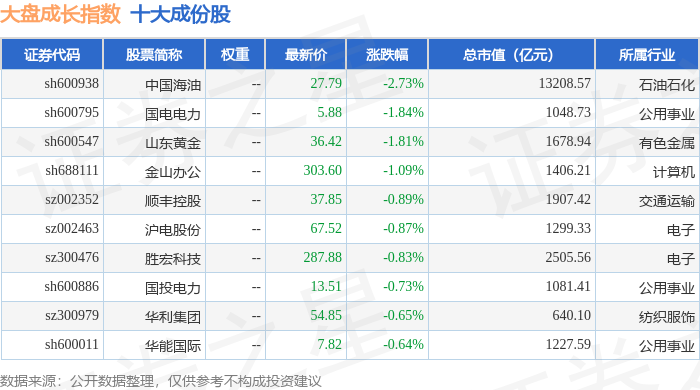 大盘成长(399372)指数十大成份股详情如下:
