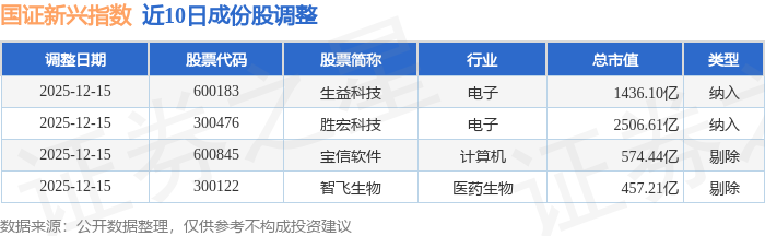 近10日内国证新兴(399392)指数成份股做了调整,新纳入了2只股票,剔除了2只股票。