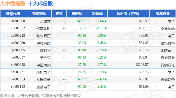 近10日内大中盘(399400)指数成份股做了调整,新纳入了26只股票,剔除了26只股票。