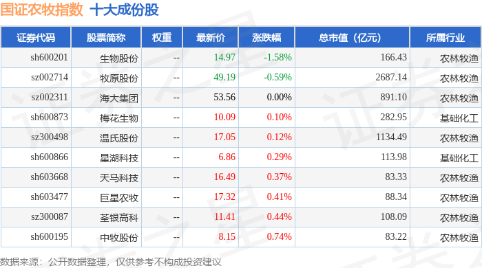 近10日内国证农牧(399435)指数成份股做了调整,新纳入了3只股票,剔除了3只股票。