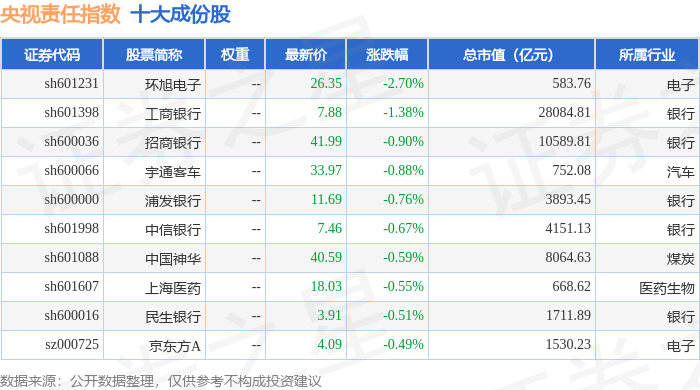 证券之星消息,12月19日,央视责任(399555)指数报收于5358.31点,涨0.13%,成交441.79亿元,换手率0.62%。当日该指数成份股中,上涨的有32家,安琪酵母以5.81%的涨幅领涨,下跌的有15家,环旭电子以2.7%的跌幅领跌。