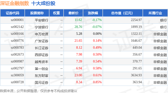 资金流向方面,深证金融(399619)指数成份股当日主力资金净流出合计2.4亿元,游资资金净流出合计2.1亿元,散户资金净流入合计4.5亿元。成份股资金流向详情见下表: