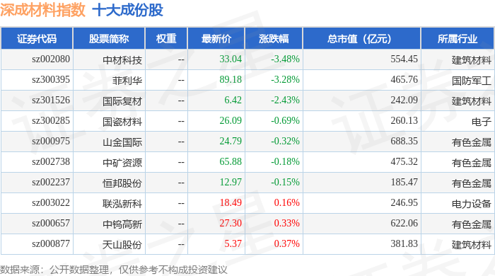 近10日内深成材料(399681)指数成份股做了调整,新纳入了1只股票,剔除了1只股票。