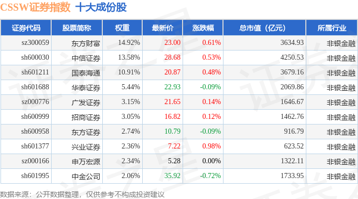 CSSW证券(399707)指数十大成份股详情如下: