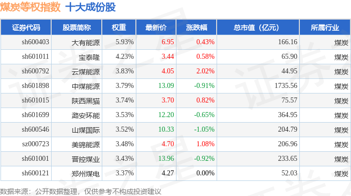 资金流向方面,煤炭等权(399990)指数成份股当日主力资金净流出合计2.64亿元,游资资金净流入合计1.01亿元,散户资金净流入合计1.63亿元。成份股资金流向详情见下表: