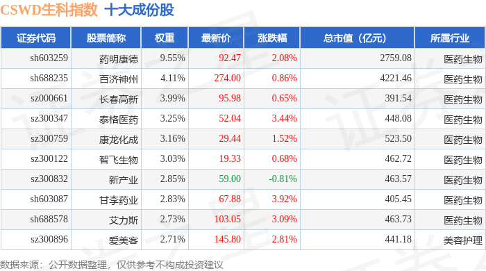 资金流向方面,CSWD生科(399993)指数成份股当日主力资金净流入合计4.59亿元,游资资金净流出合计4.33亿元,散户资金净流出合计3689.56万元。成份股资金流向详情见下表: