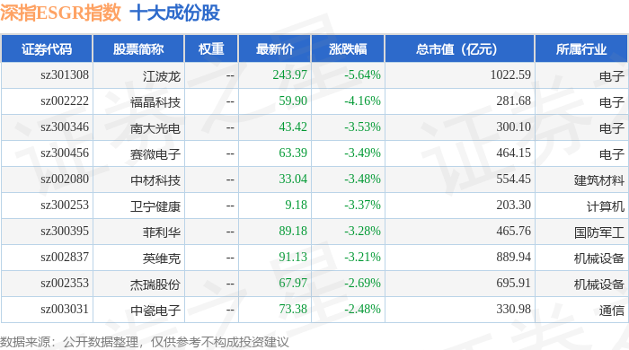 深指ESGR(470026)指数十大成份股详情如下: