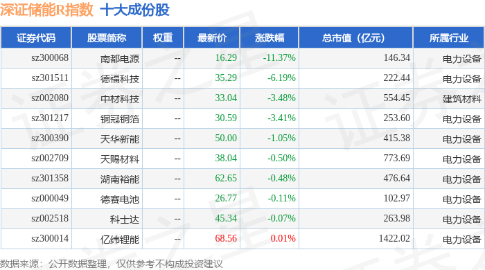 近10日内深证储能R(470036)指数成份股做了调整,新纳入了1只股票,剔除了1只股票。