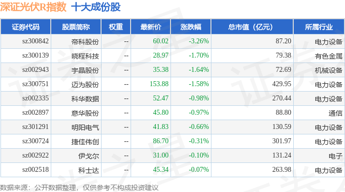 近10日内深证光伏R(470035)指数成份股做了调整,新纳入了5只股票,剔除了6只股票。