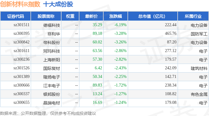 近10日内创新材料R(470039)指数成份股做了调整,新纳入了5只股票,剔除了5只股票。
