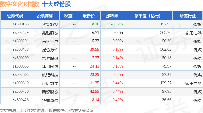 数字文化R(470047)指数十大成份股详情如下: