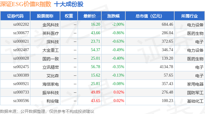 深证ESG价值R(470061)指数十大成份股详情如下: