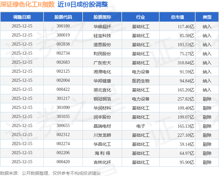 近10日内深证绿色化工R(470076)指数成份股做了调整,新纳入了8只股票,剔除了8只股票。