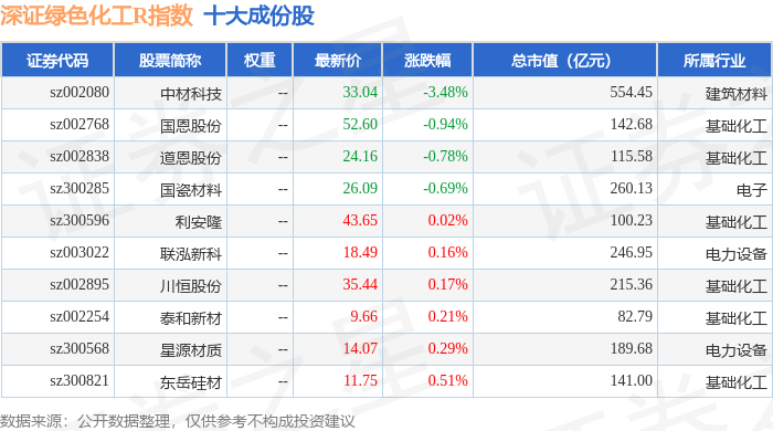 深证绿色化工R(470076)指数十大成份股详情如下: