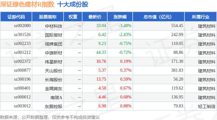 深证绿色建材R(470077)指数十大成份股详情如下: