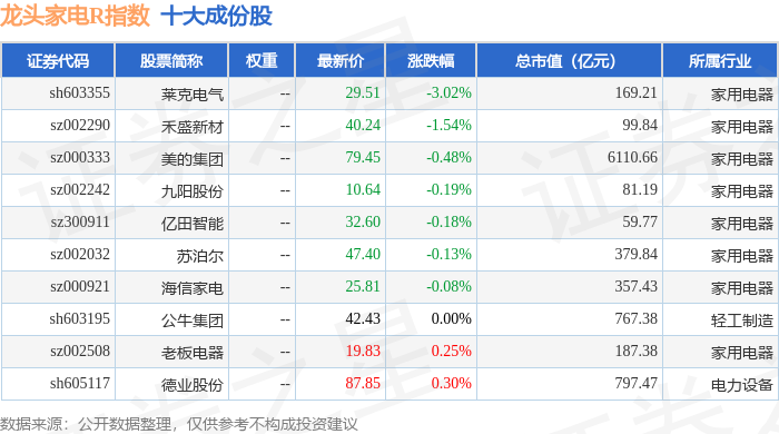 近10日内龙头家电R(480028)指数成份股做了调整,新纳入了3只股票,剔除了3只股票。