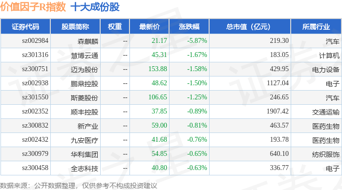 价值因子R(480056)指数十大成份股详情如下: