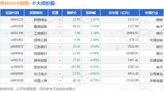 帮扶100R(480065)指数十大成份股详情如下: