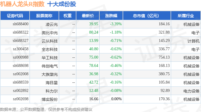 机器人龙头R(480071)指数十大成份股详情如下: