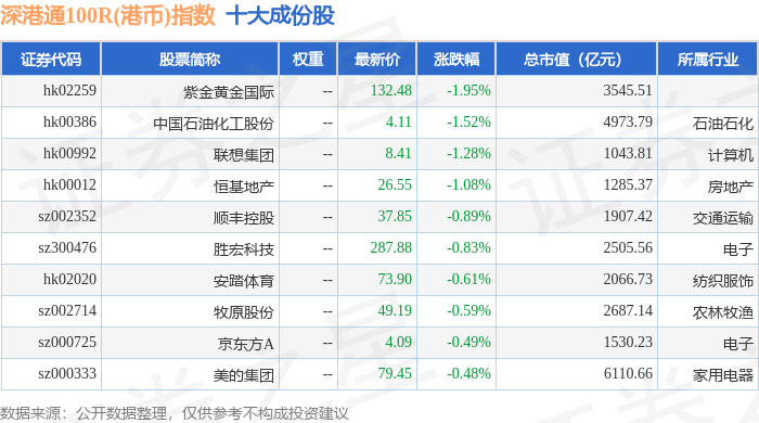 深港通100R(港币)(483008)指数十大成份股详情如下: