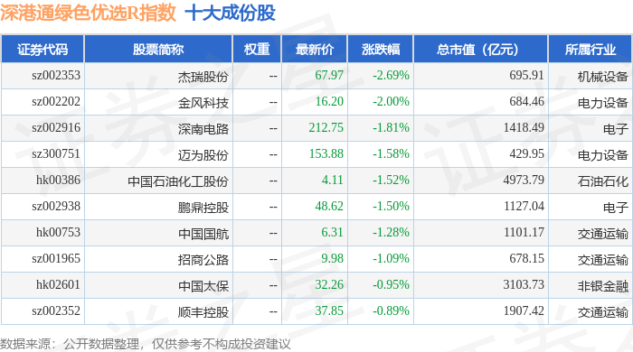 深港通绿色优选R(483011)指数十大成份股详情如下: