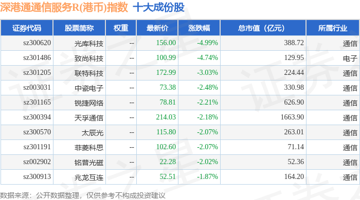 深港通通信服务R(港币)(483034)指数十大成份股详情如下:
