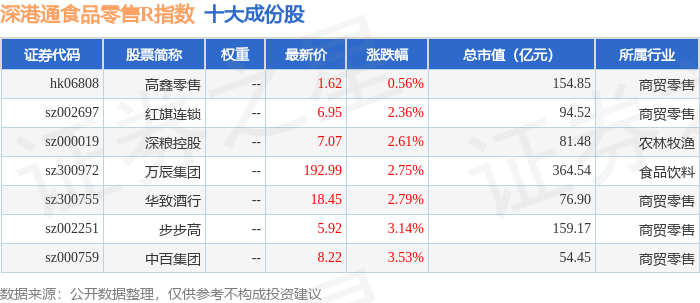 深港通食品零售R(483037)指数十大成份股详情如下: