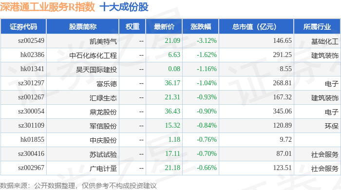 深港通工业服务R(483055)指数十大成份股详情如下: